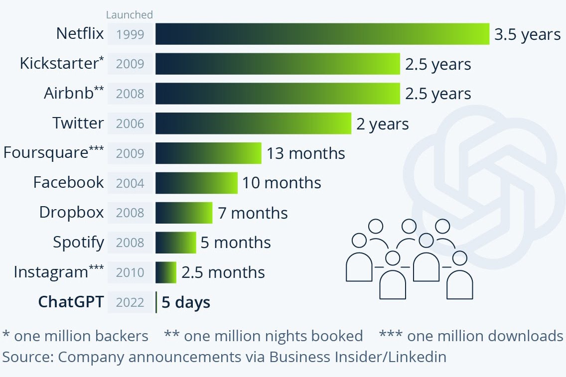 Theo số liệu thống kê của Ark Invest, lượng người sử dụng ChatGPT đã vượt qua mốc 12 triệu người. Chương trình máy tính này ngày càng xuất hiện nhiều hơn trong các cuộc nói chuyện và thảo luận của mọi người. Trong những câu chuyện đó, nó được nhắc tới như một sản phẩm công nghệ mới có khả năng làm thay đổi và định hình lại thế giới trong những năm tới.